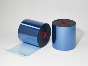 Unter Reinraumbedingungen stellen wir unsere eigenen MEDPETG-Thermoformfolien in verschiedenen Qualitäten her. Neu bieten wir MEDPETG-EF (Eco-friendly) an: eine dreischichtige Folie, deren Mittelschicht aus Regranulat besteht – ideal für CO₂-reduzierte Blisterverpackungen.