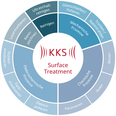 Reinigen, Anodisieren, Elektropolieren, Passivieren, Ätzen, Beizen, Trocken- Nassstrahlen, Gleitschleifen